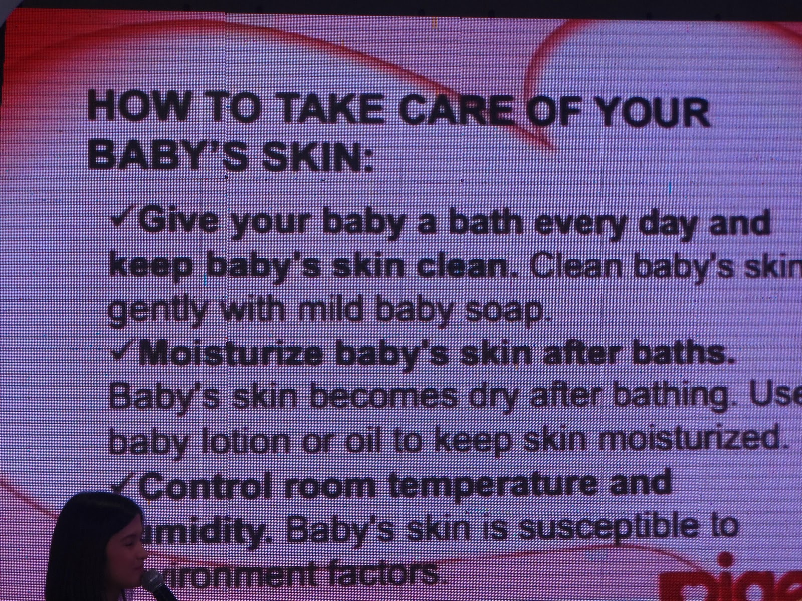 | pretty mum camille pratts giving a talk on baby skin care with the pigeon representative |